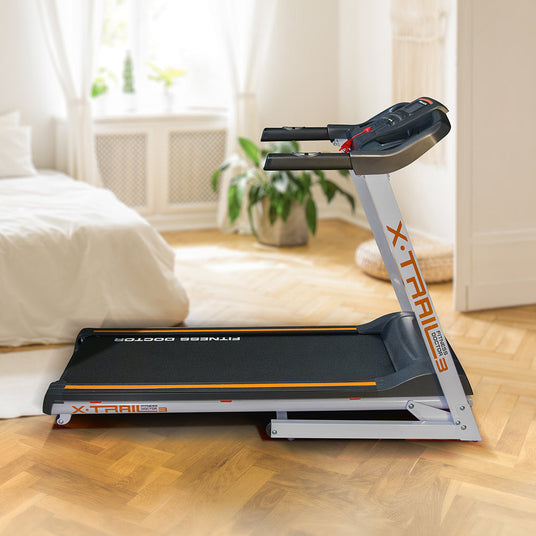Le tapis de course X Trail 3 de Fitness Doctor est équipé d'un moteur de 2,75 CV en pic et 1,75 CV en continu, offrant une vitesse ajustable de 0 à 16 km/h.